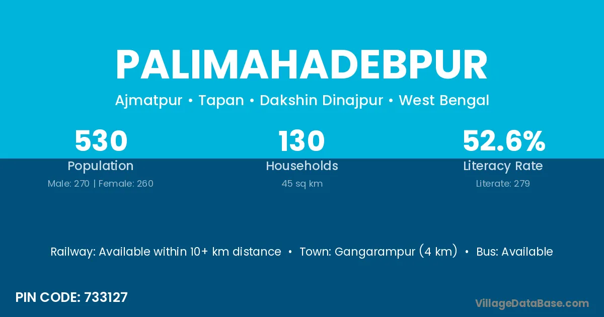 Palimahadebpur village has a total population of 530 people, of which 270 are males and 260 are females.