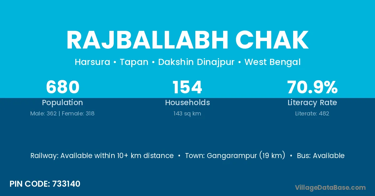 Gangarampur (19 km) is the nearest town to Rajballabh Chak village for major economic activities and is located approximately 19 km away.