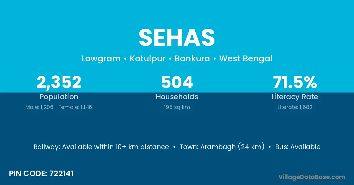 Gangarampur (20 km) is the nearest town to Sehas village for major economic activities and is located approximately 20 km away.