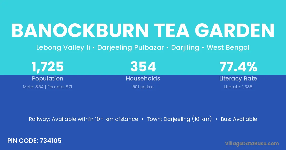 Darjeeling (10 km) is the nearest town to Banockburn Tea Garden village for major economic activities and is located approximately 10 km away.