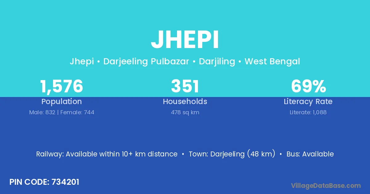 Darjeeling (48 km) is the nearest town to Jhepi village for major economic activities and is located approximately 48 km away.