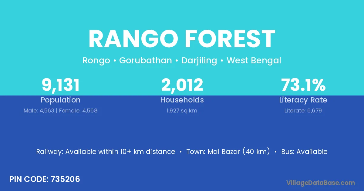 According to Census 2011 information, the village code of Rango Forest village is 735206.
