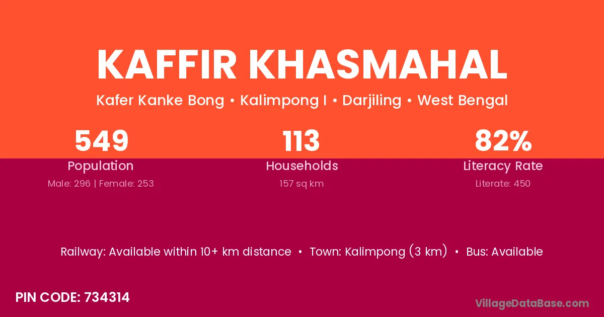 Kalimpong (3 km) is the nearest town to Kaffir Khasmahal village for major economic activities and is located approximately 3 km away.