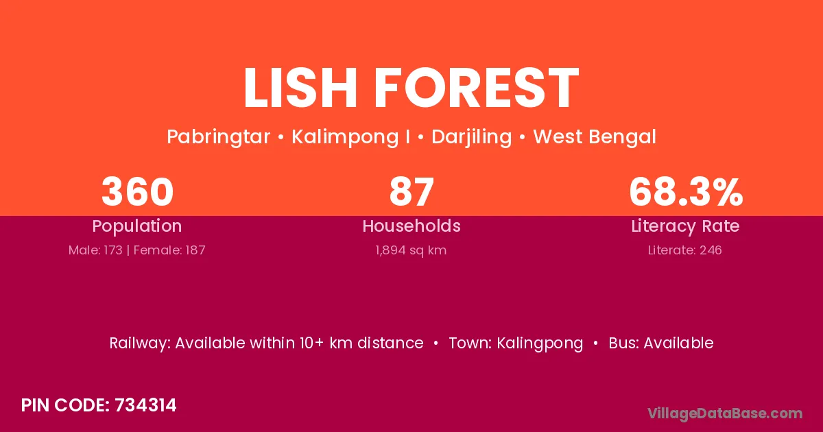 According to Census 2011 information, the village code of Lish Forest village is 734314.