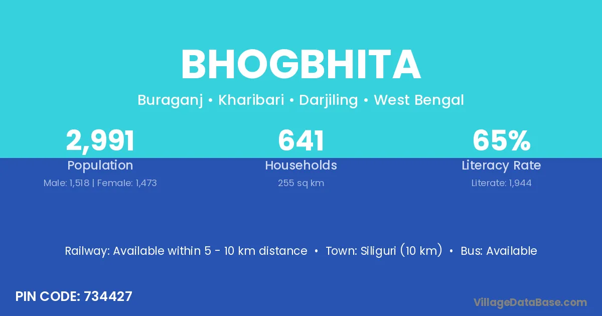 Siliguri (10 km) is the nearest town to Bhogbhita village for major economic activities and is located approximately 10 km away.