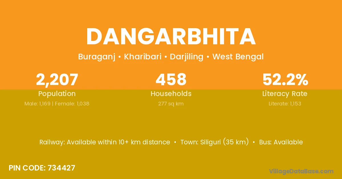 Siliguri (35 km) is the nearest town to Dangarbhita village for major economic activities and is located approximately 35 km away.