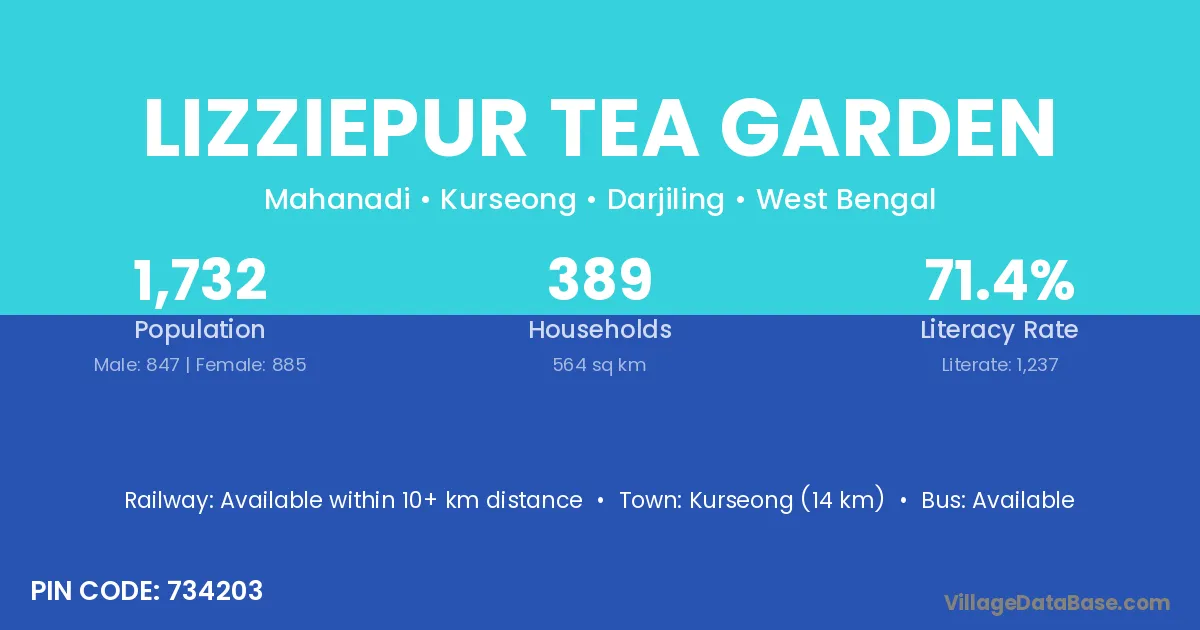 There are approximately 389 households in Lizziepur Tea Garden village.