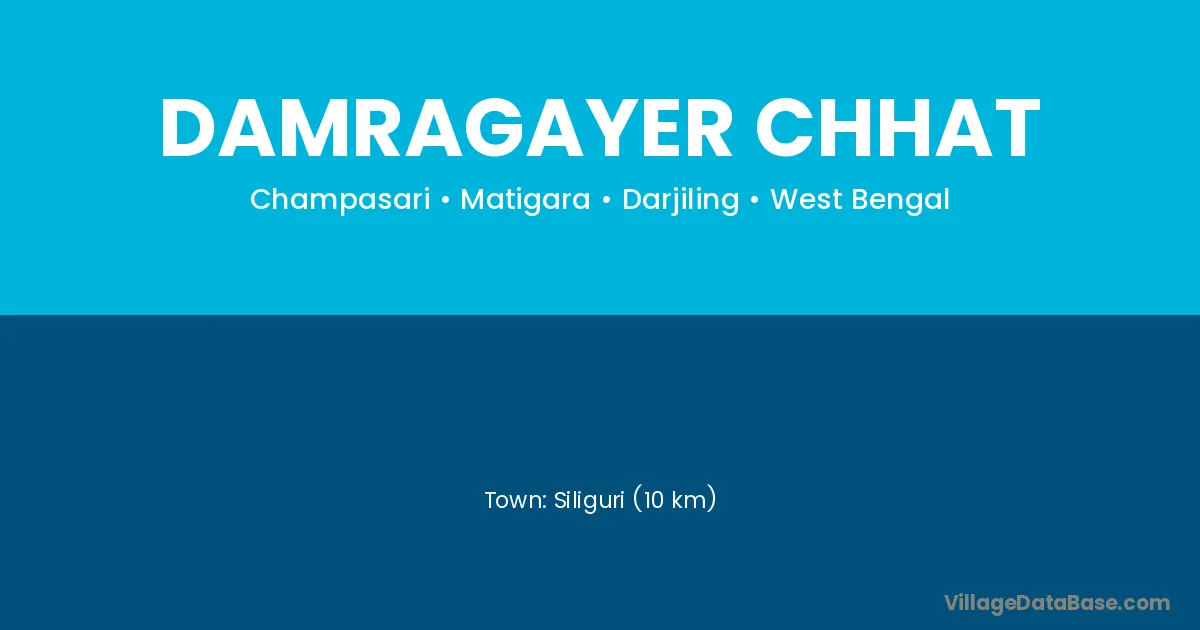Siliguri (10 km) is the nearest town to Damragayer Chhat village for major economic activities and is located approximately 10 km away.