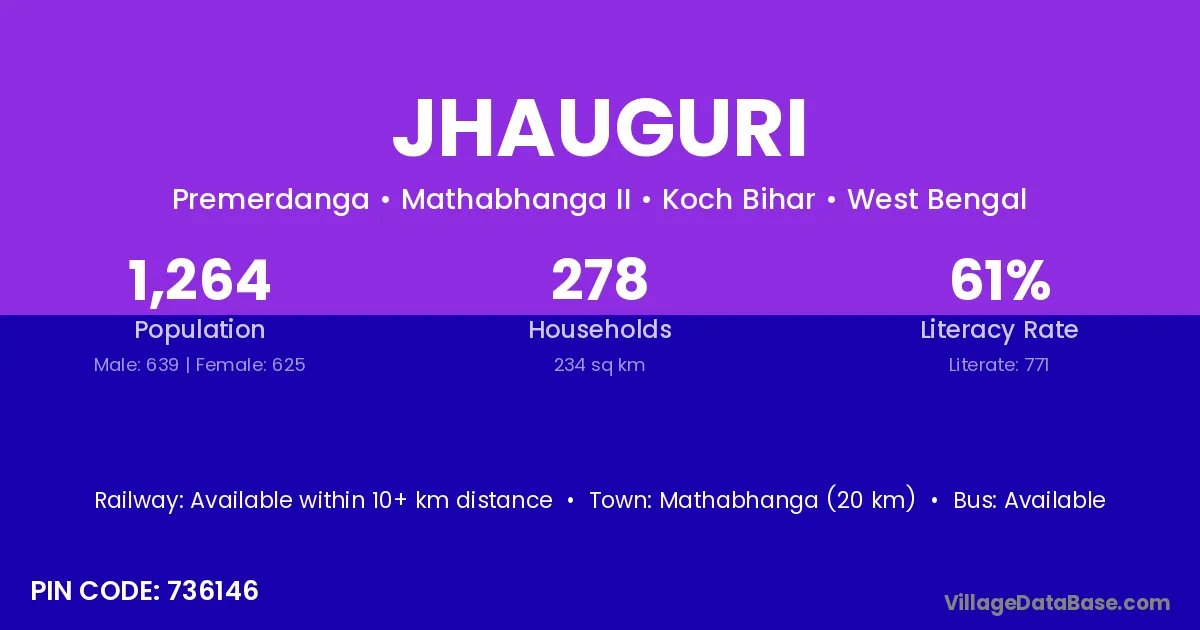 Siliguri (10 km) is the nearest town to Jhauguri village for major economic activities and is located approximately 10 km away.