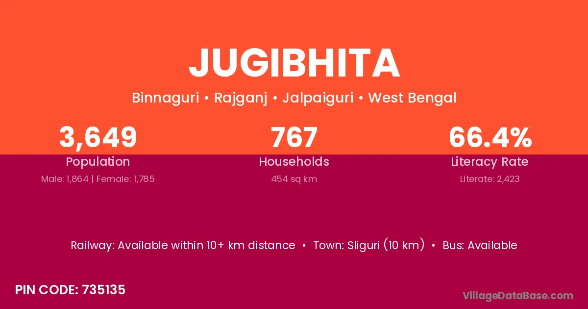 Siliguri (10 km) is the nearest town to Jugibhita village for major economic activities and is located approximately 10 km away.