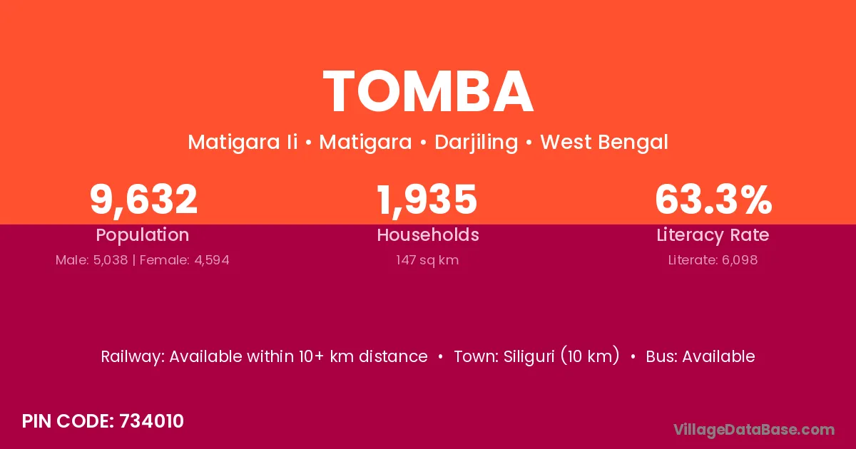 According to Census 2011 information, the village code of Tomba village is 734010.