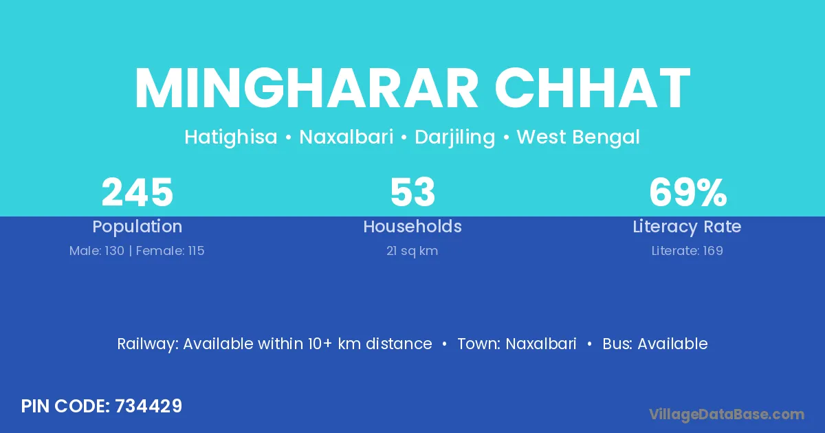 Mingharar Chhat village has a total population of 245 people, of which 130 are males and 115 are females.