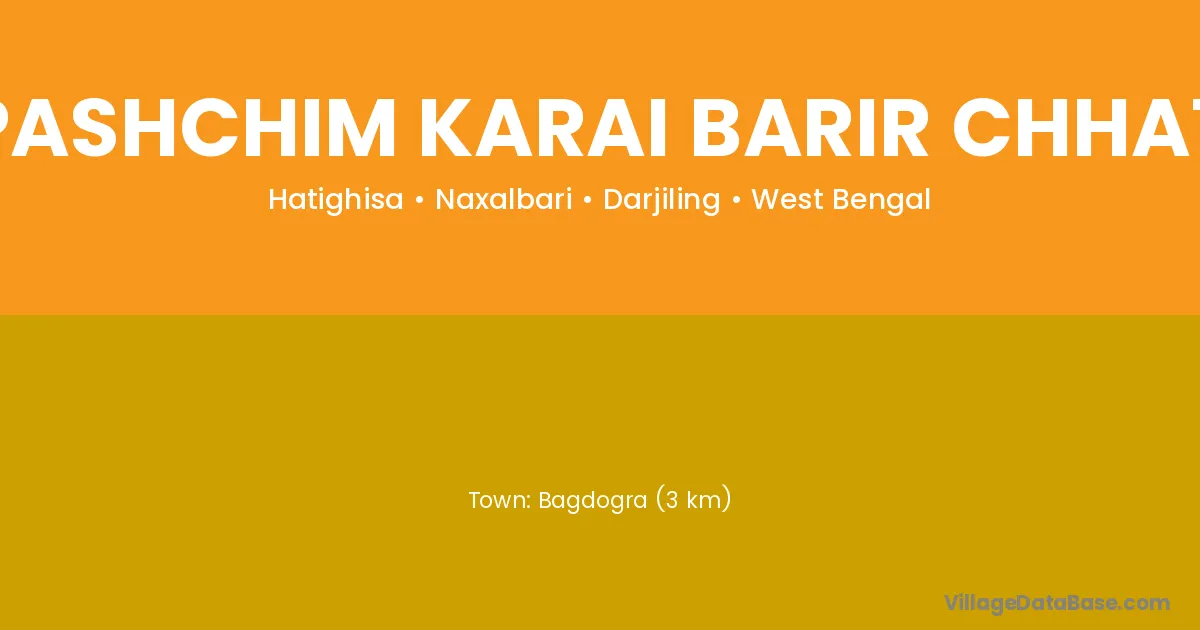 Bagdogra (3 km) is the nearest town to Pashchim Karai Barir Chhat village for major economic activities and is located approximately 3 km away.