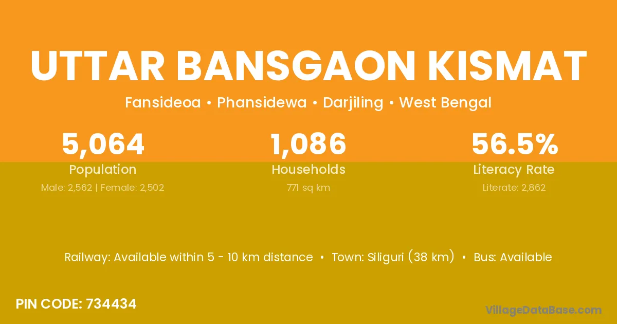 Siliguri (38 km) is the nearest town to Uttar Bansgaon Kismat village for major economic activities and is located approximately 38 km away.