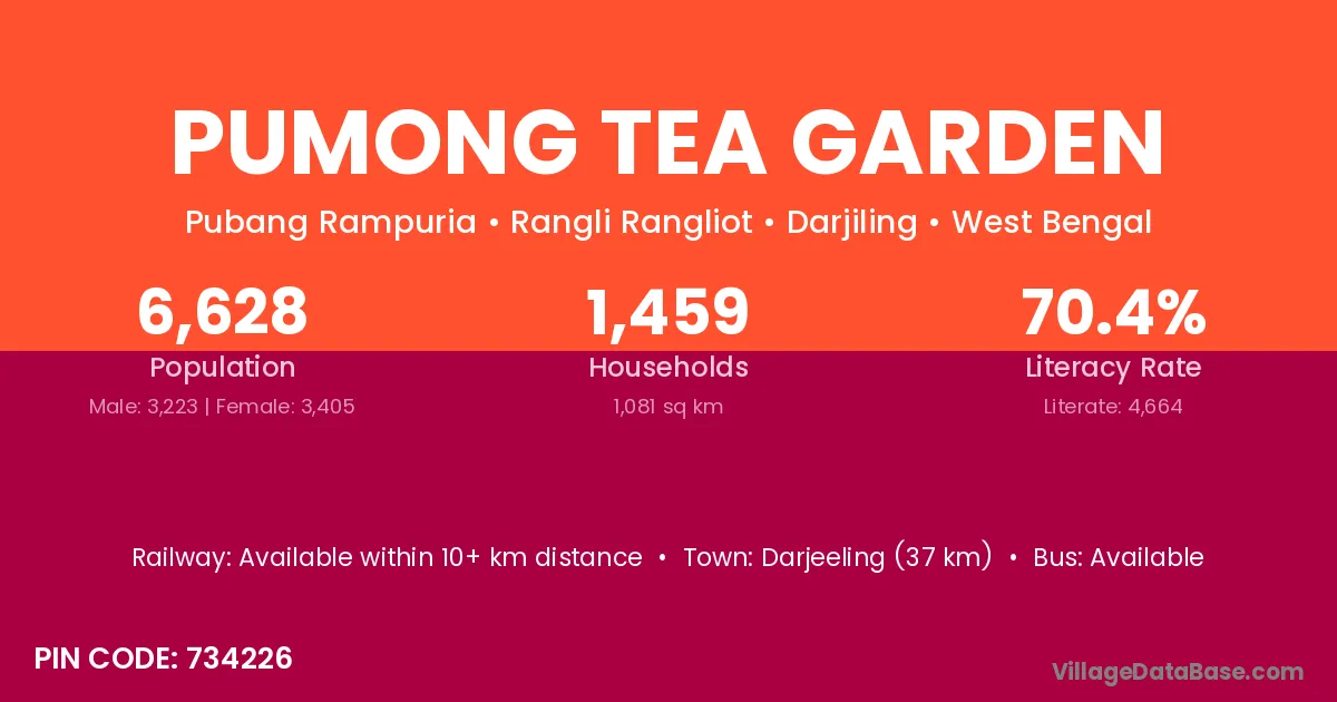 According to Census 2011 information, the village code of Pumong Tea Garden village is 734226.