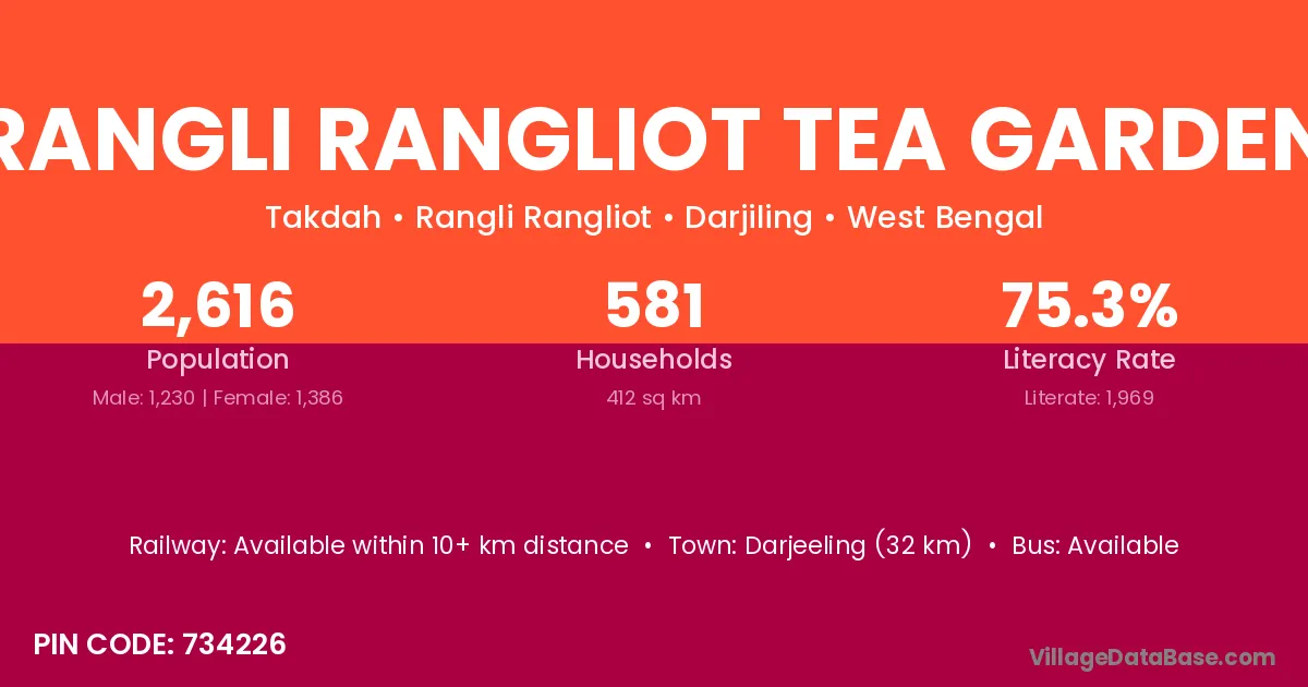 There are approximately 581 households in Rangli Rangliot Tea Garden village.