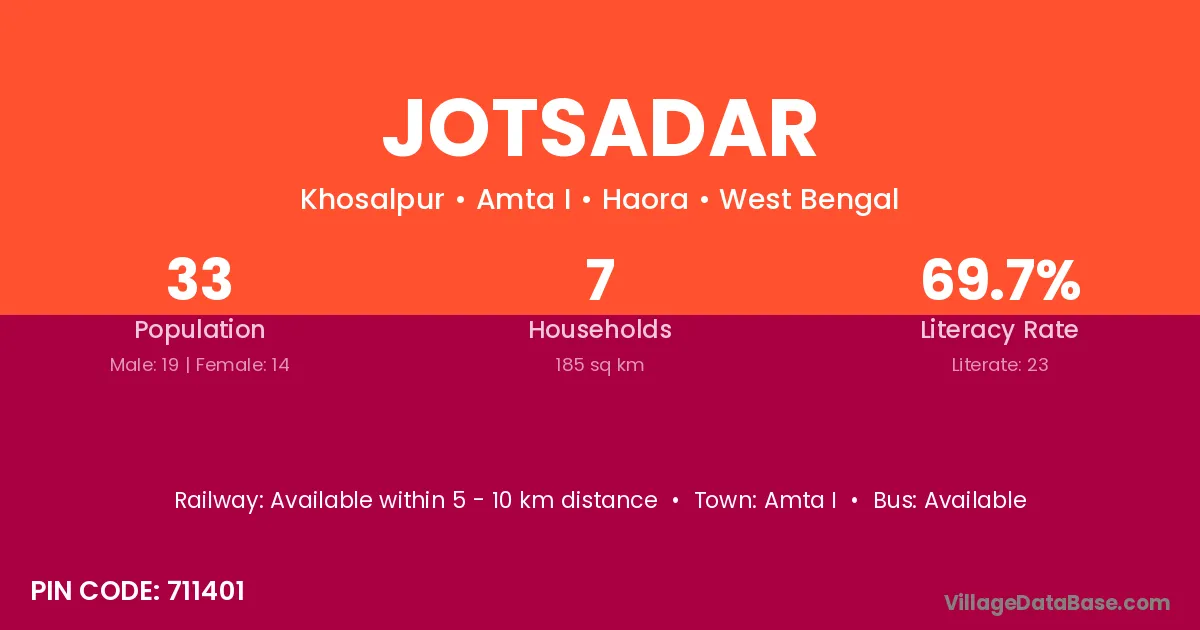 According to Census 2011 information, the village code of Jotsadar village is 711401.