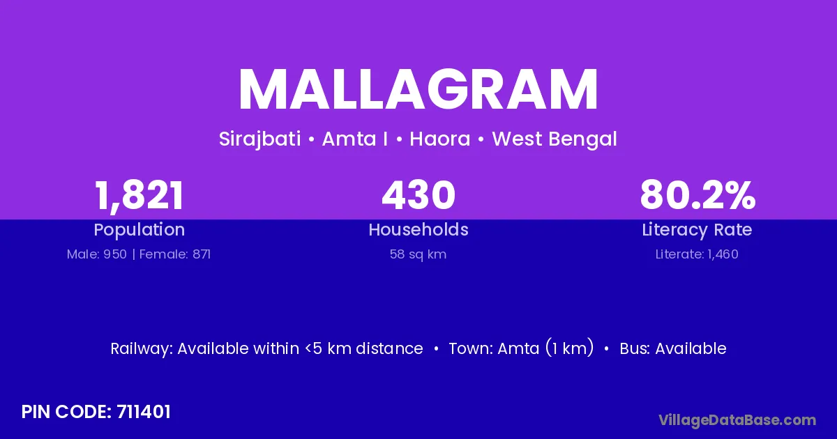According to Census 2011 information, the village code of Mallagram village is 711401.