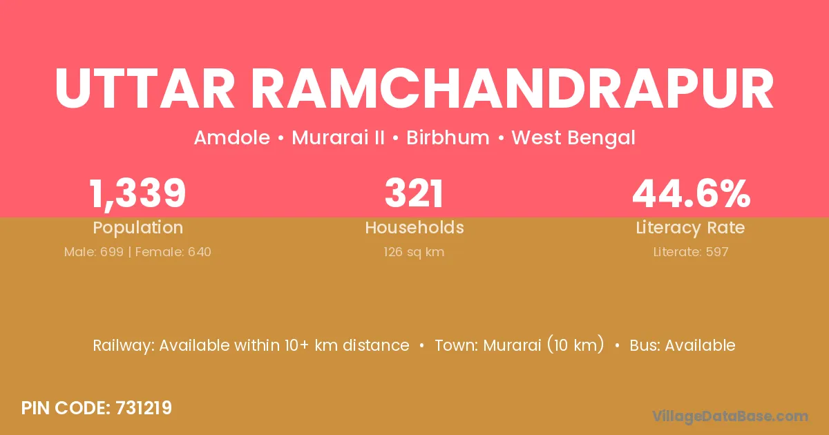 Uluberia. (25 km) is the nearest town to Uttar Ramchandrapur village for major economic activities and is located approximately 25 km away.
