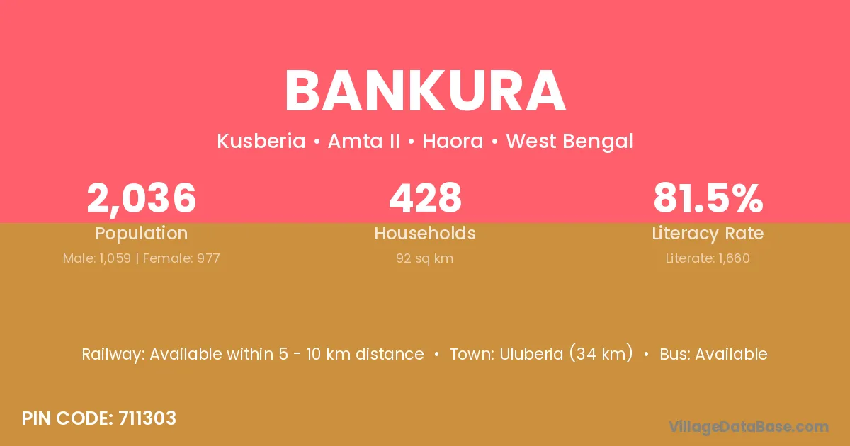 Uluberia (34 km) is the nearest town to Bankura village for major economic activities and is located approximately 34 km away.