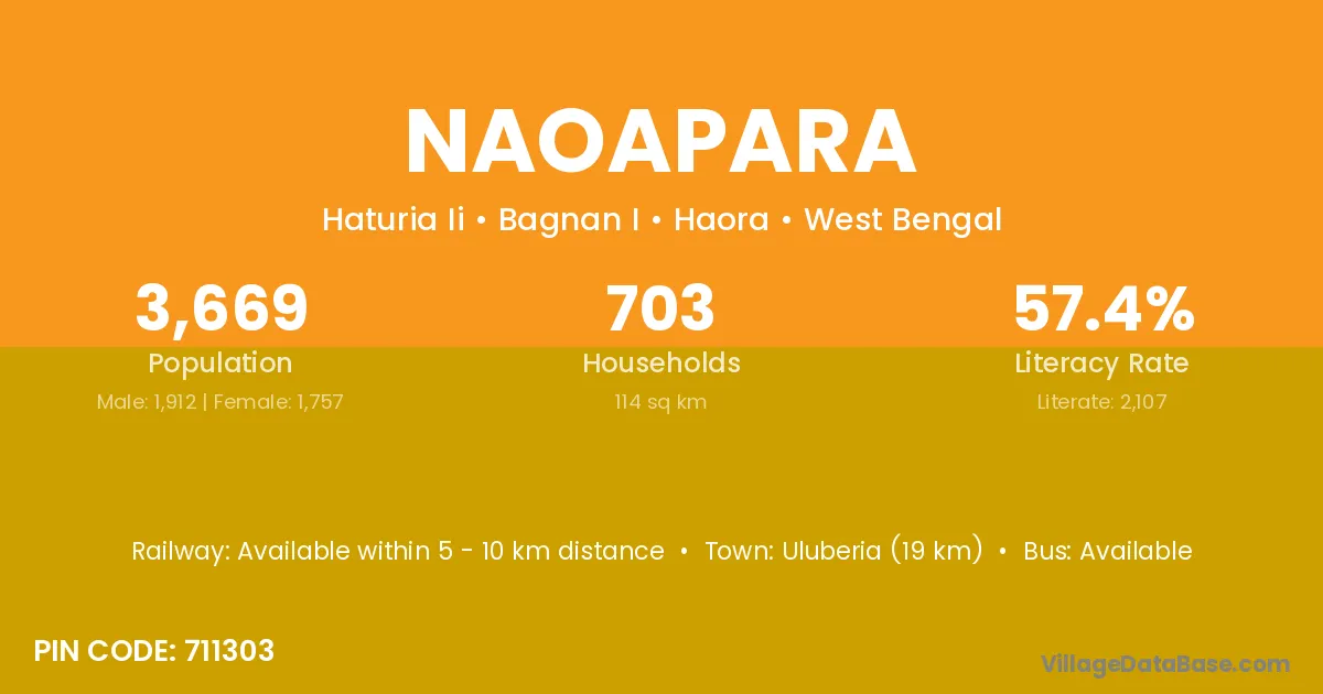 Uluberia (19 km) is the nearest town to Naoapara village for major economic activities and is located approximately 19 km away.