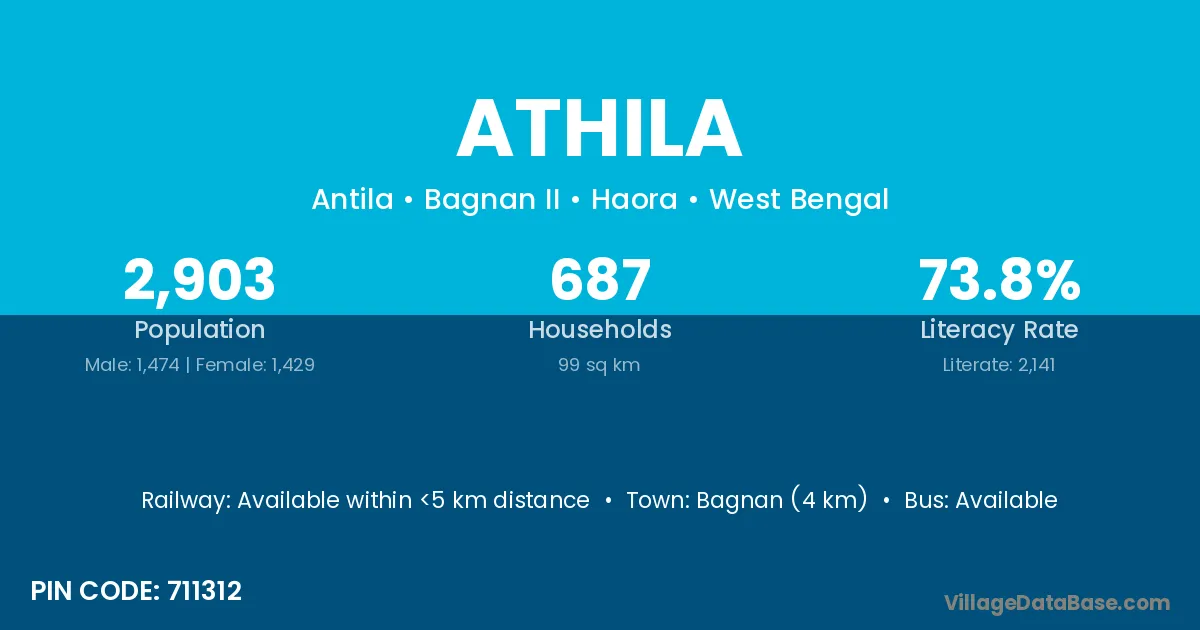 Bagnan (4 km) is the nearest town to Athila village for major economic activities and is located approximately 4 km away.