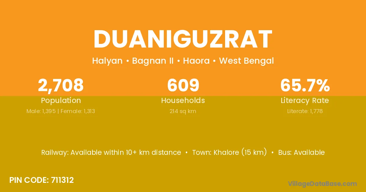 According to Census 2011 information, the village code of Duaniguzrat village is 711312.
