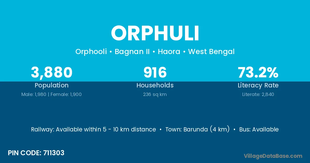 According to Census 2011 information, the village code of Orphuli village is 711303.