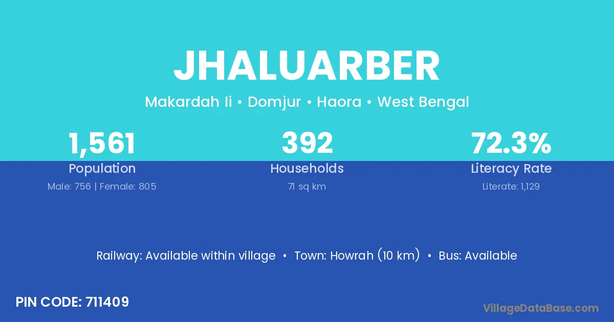 Howrah (10 km) is the nearest town to Jhaluarber village for major economic activities and is located approximately 10 km away.