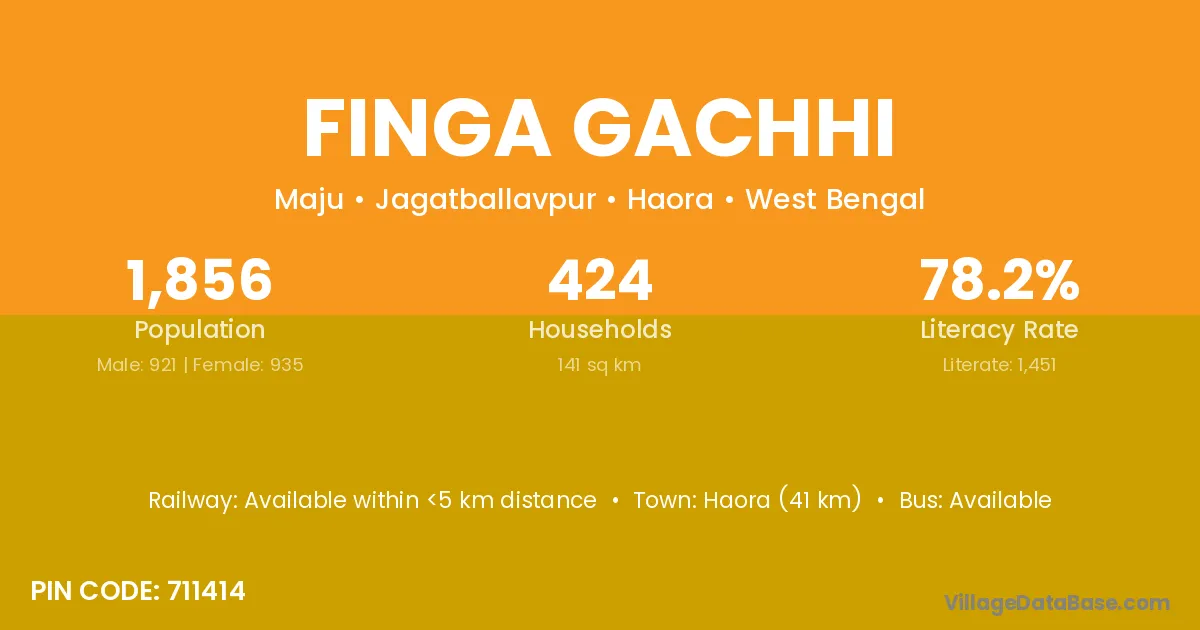 Haora (41 km) is the nearest town to Finga Gachhi village for major economic activities and is located approximately 41 km away.