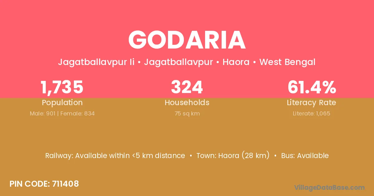 Haora (28 km) is the nearest town to Godaria village for major economic activities and is located approximately 28 km away.