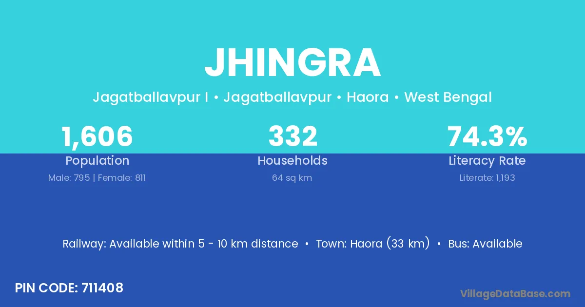 Haora (33 km) is the nearest town to Jhingra village for major economic activities and is located approximately 33 km away.