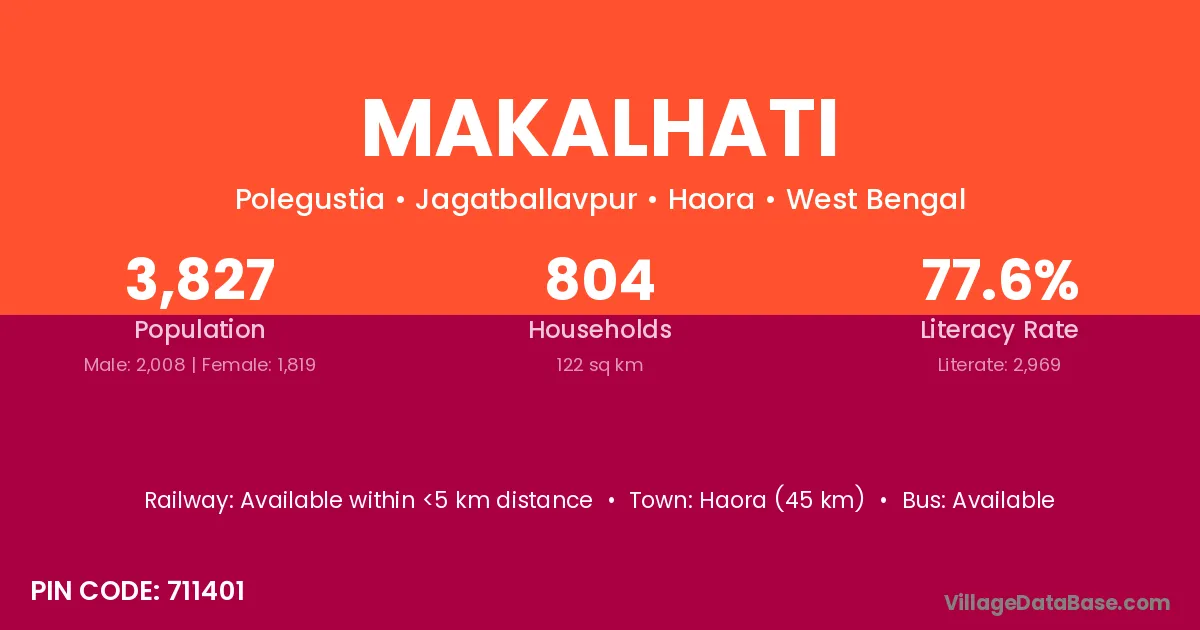 Haora (45 km) is the nearest town to Makalhati village for major economic activities and is located approximately 45 km away.