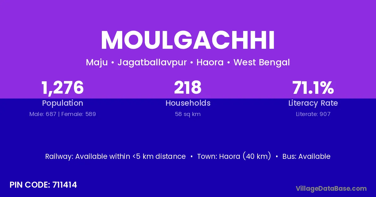 Haora (40 km) is the nearest town to Moulgachhi village for major economic activities and is located approximately 40 km away.