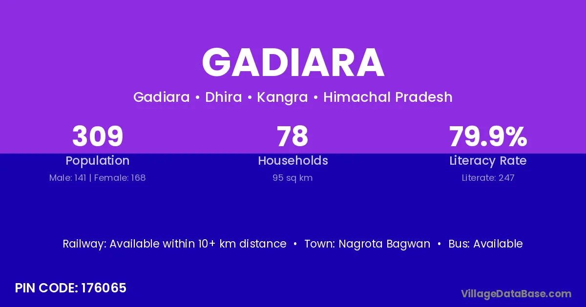 Gadiara village has a total population of 1,806 people, of which 914 are males and 892 are females.