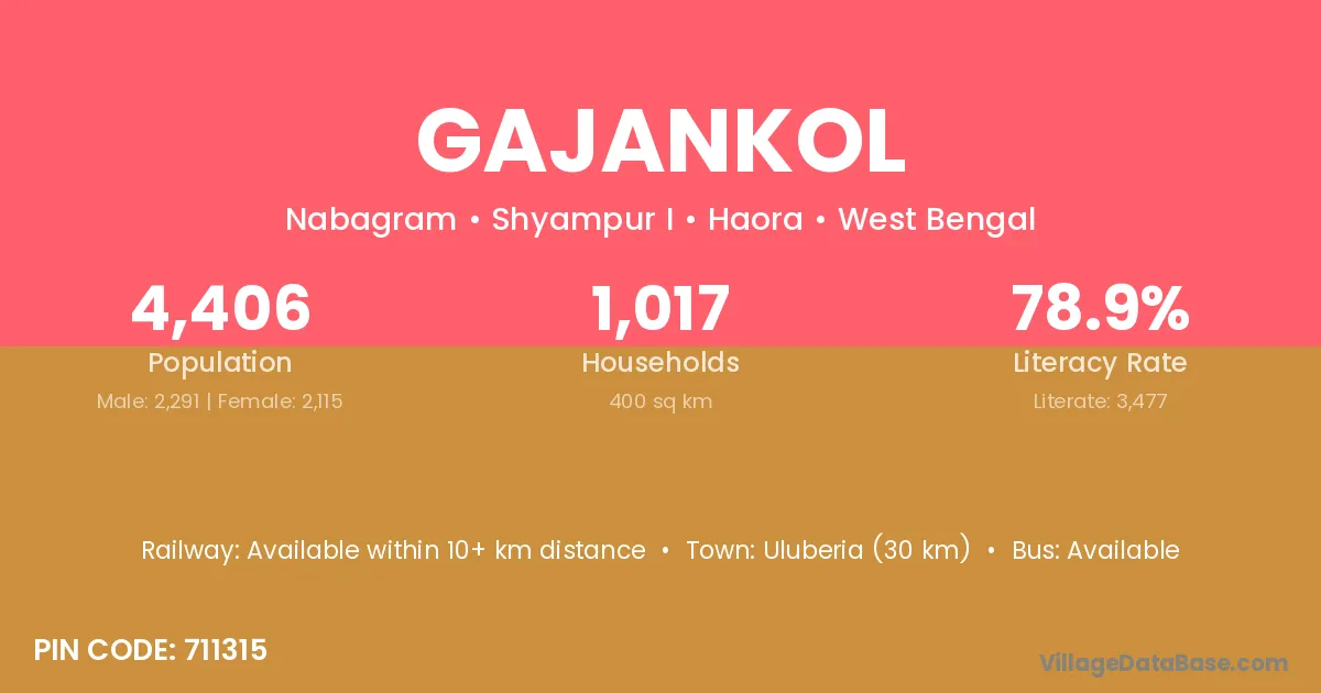 According to Census 2011 information, the village code of Gajankol village is 711315.