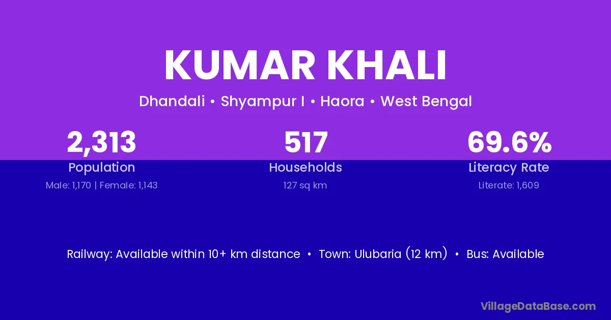 Ulubaria (12 km) is the nearest town to Kumar Khali village for major economic activities and is located approximately 12 km away.