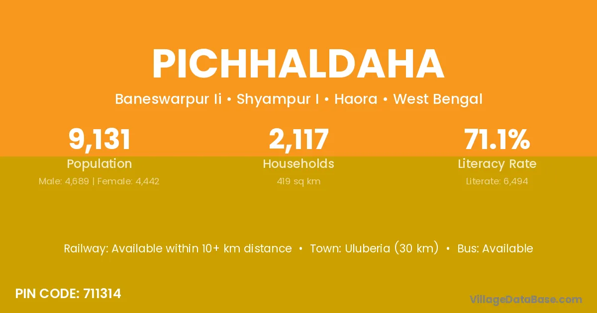 Uluberia (30 km) is the nearest town to Pichhaldaha village for major economic activities and is located approximately 30 km away.