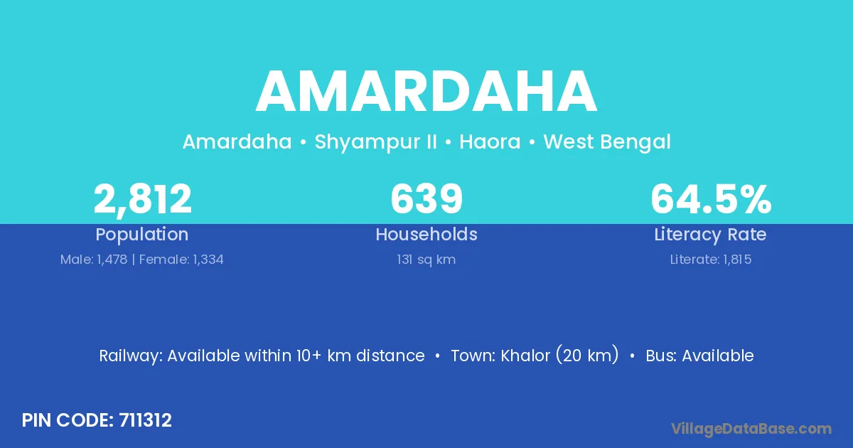 According to Census 2011 information, the village code of Amardaha village is 711312.