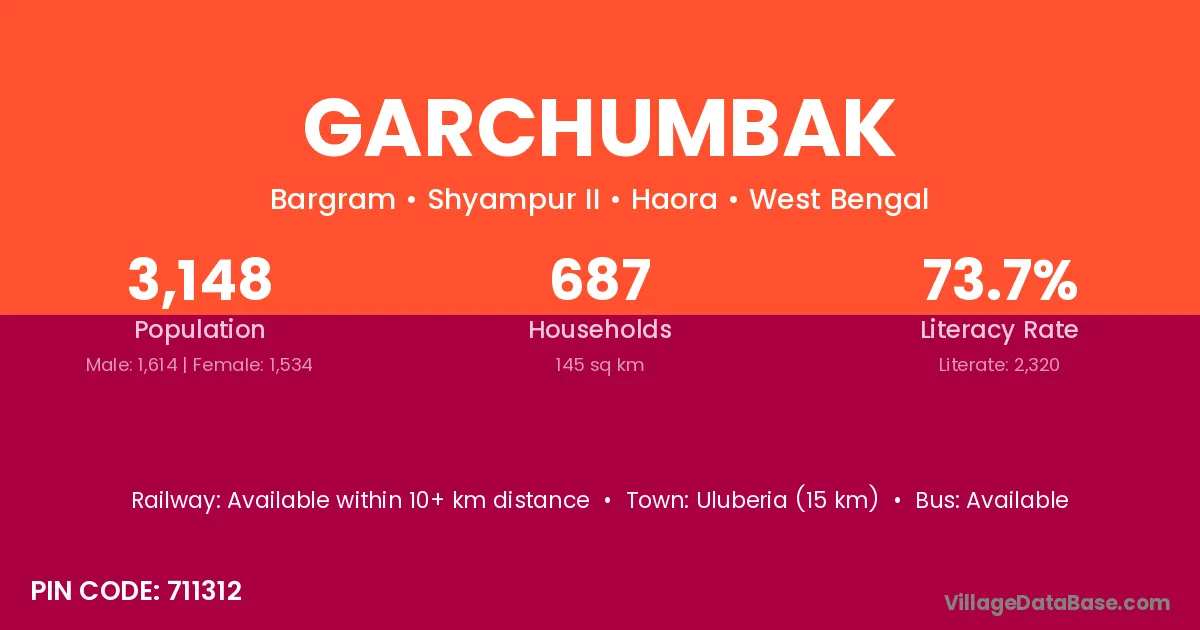 Uluberia (15 km) is the nearest town to Garchumbak village for major economic activities and is located approximately 15 km away.