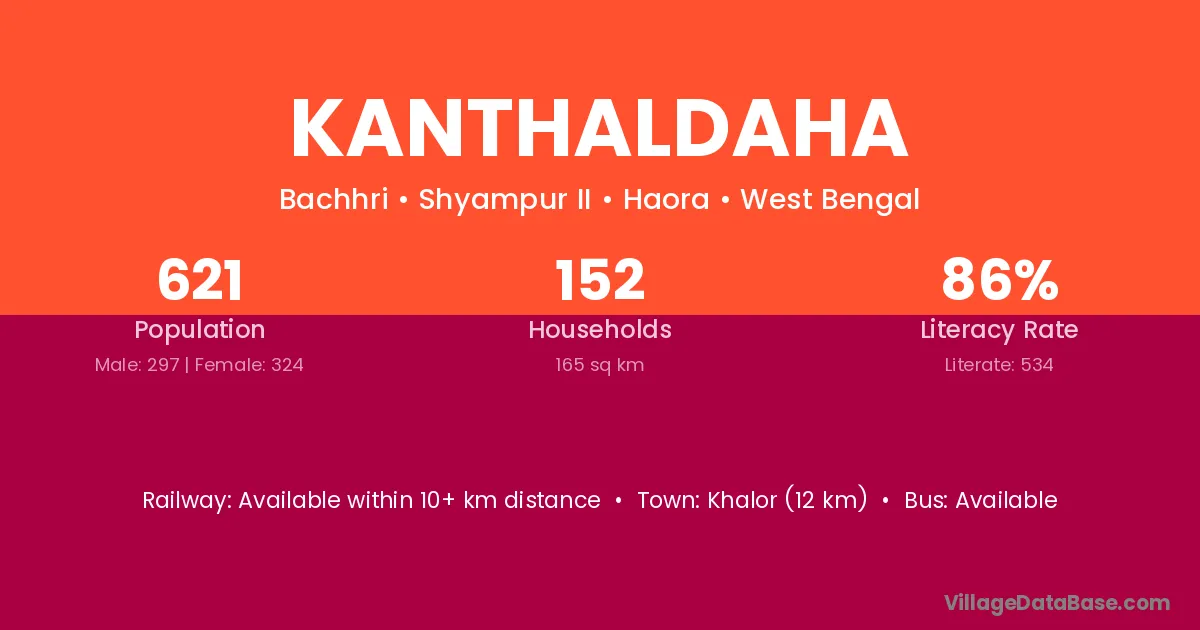 Kanthaldaha village has a total population of 621 people, of which 297 are males and 324 are females.