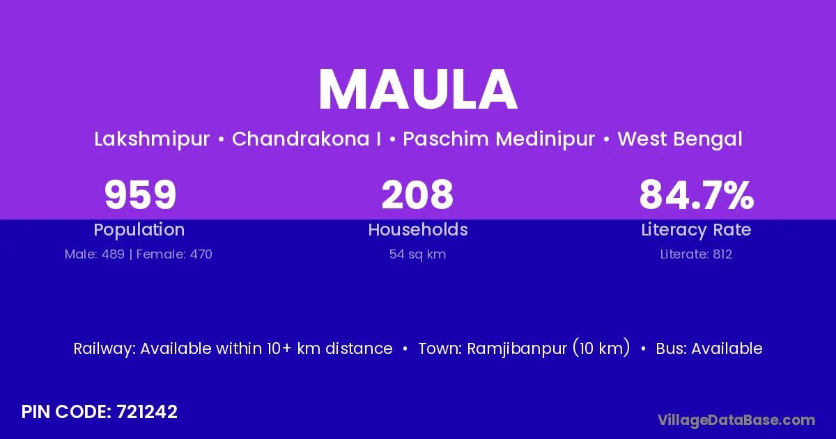 Uluberia (24 km) is the nearest town to Maula village for major economic activities and is located approximately 24 km away.