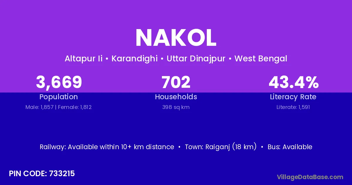 According to Census 2011 information, the village code of Nakol village is 711312.