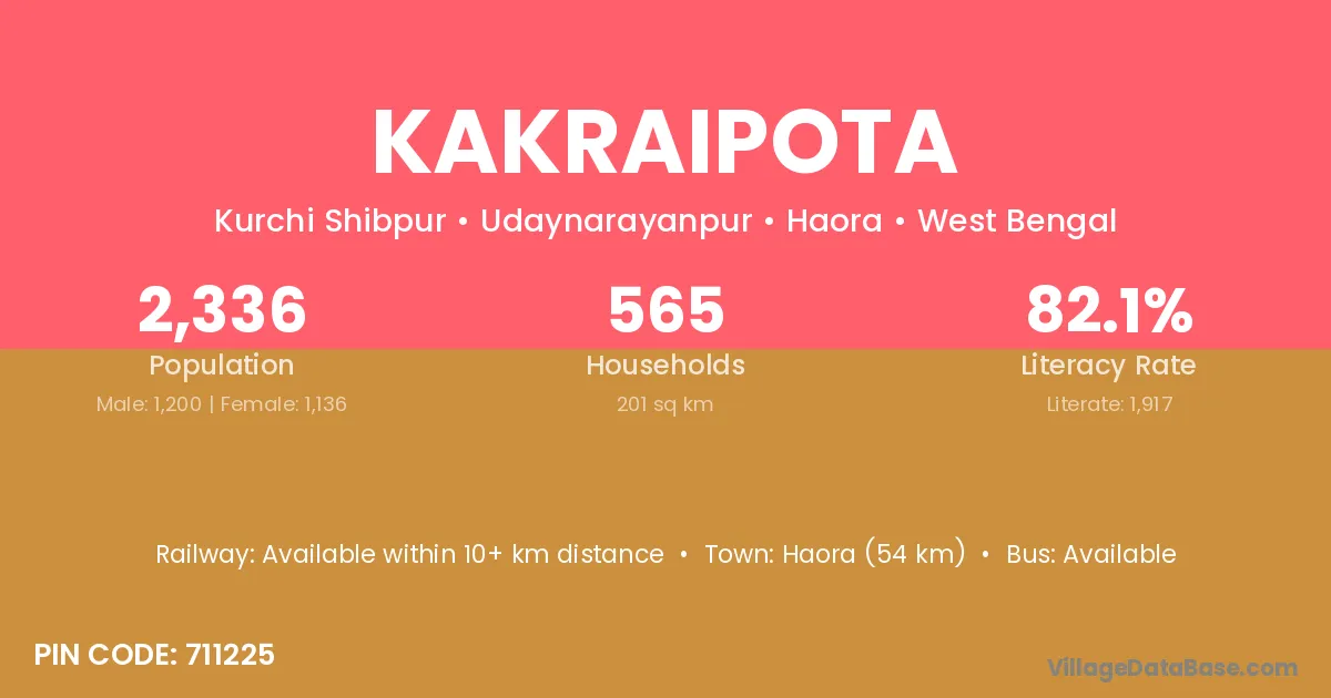 According to Census 2011 information, the village code of Kakraipota village is 711225.