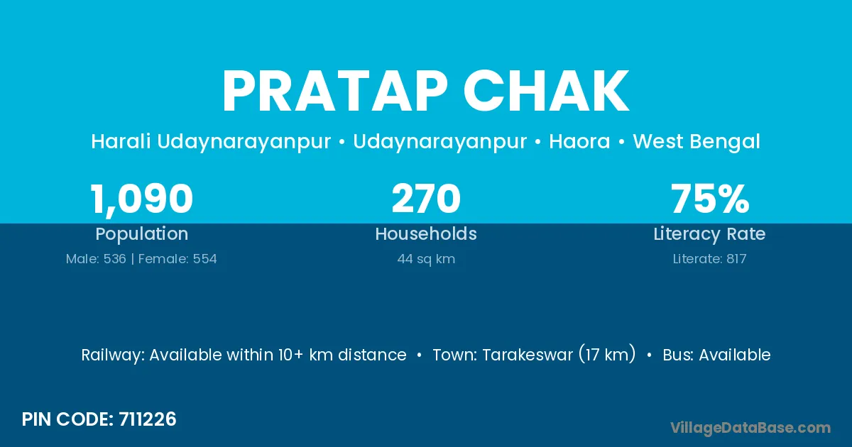 Tarakeswar (17 km) is the nearest town to Pratap Chak village for major economic activities and is located approximately 17 km away.
