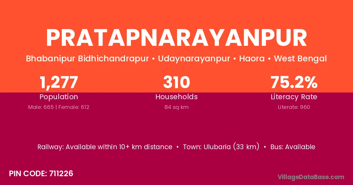 Ulubaria (33 km) is the nearest town to Pratapnarayanpur village for major economic activities and is located approximately 33 km away.