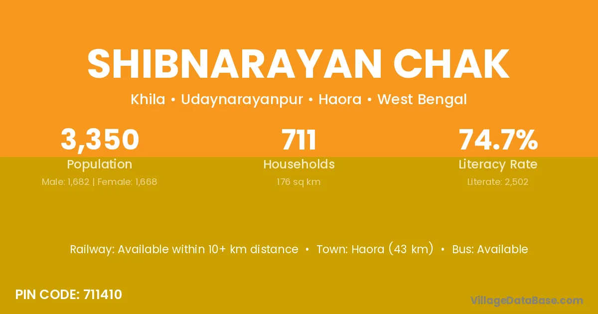 Shibnarayan Chak village has a total population of 3,350 people, of which 1,682 are males and 1,668 are females.