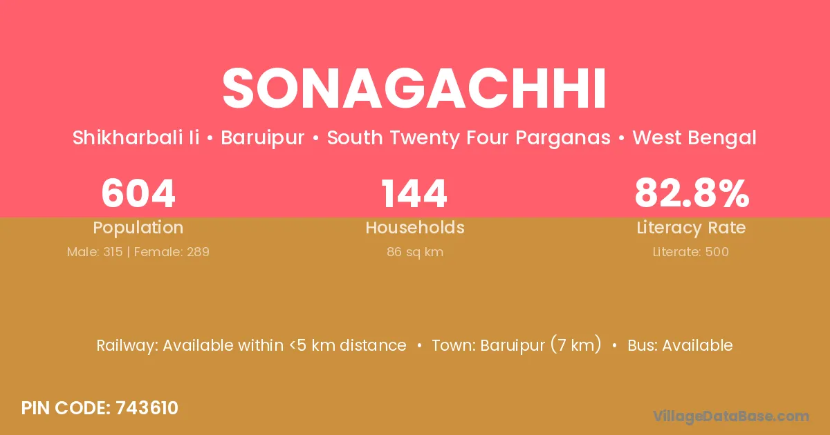 Sonagachhi village has a total population of 641 people, of which 337 are males and 304 are females.