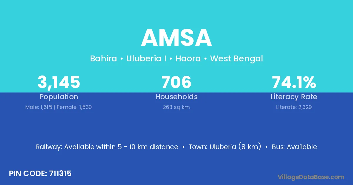 Uluberia (8 km) is the nearest town to Amsa village for major economic activities and is located approximately 8 km away.