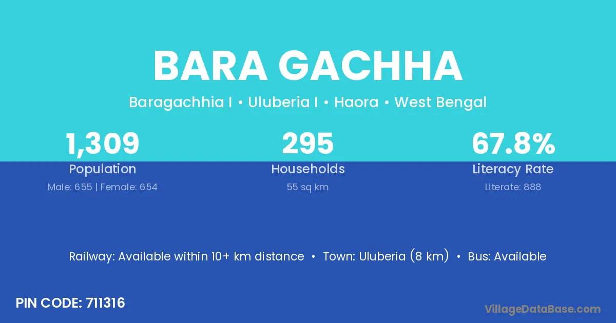 Uluberia (8 km) is the nearest town to Bara Gachha village for major economic activities and is located approximately 8 km away.